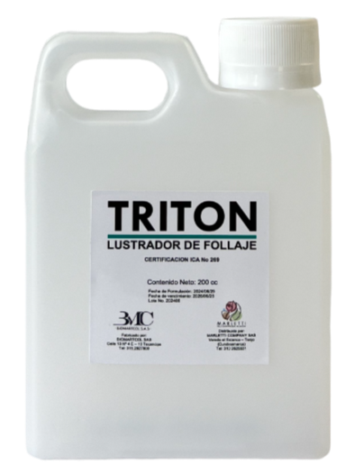 TRITÓN es un limpiador de follaje con aceites esenciales de plantas de la familia rutáceas (cítricos) y zingiberáceas (jengibre), solventes y dispersantes, con efecto insecticida de contacto.